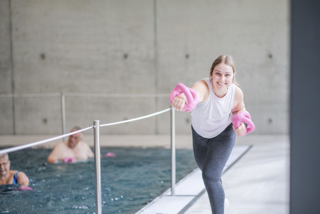 Du möchtest fit werden, deine Gelenke schonen und dabei Spaß im Wasser haben? Dann ist unser Aquafitness-Kurs genau das Richtige für dich!