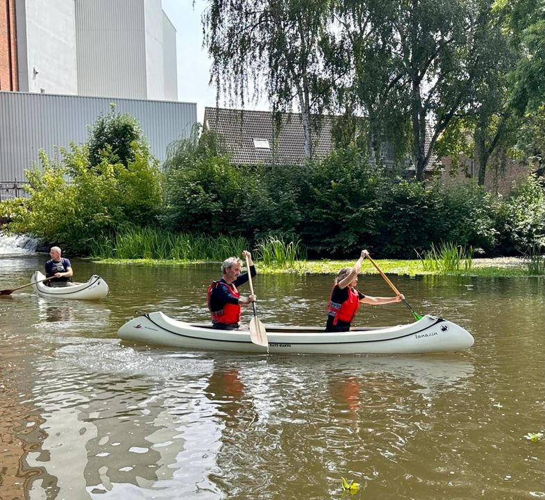 Nach einer kurzen, praxisnahen Einweisung in Boote und Ausrüstung geht es los: Gemeinsam mit Stephan Küppers und anderen Paddelbegeisterten erkundest du die Erft vom Wasser aus. Der Streckenabschnitt wird flexibel gewählt, an die Vorkenntnisse der Teilnehmer*innen angepasst und vorab mit Stephan abgestimmt – so kommen Einsteiger*innen wie fortgeschrittene Paddler*innen gleichermaßen auf ihre Kosten.