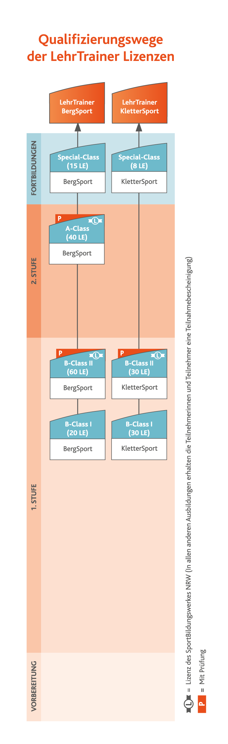Durch die steigende Beliebtheit des Bergsports generell wächst Sport intern und extern der Bedarf nach einer entsprechenden Qualifizierung. Das SportBildungswerk sieht den LehrTrainer hier als Fachkraft und Experten, der in diesem Sportbereich umfassend ausgebildet ist. Nicht nur im SportBildungswerk, sondern auch an der Schule (Ministerium für Schule und Weiterbildung des Landes NRW, Sicherheitsförderung im Schulsport), Hochschule, im Verein oder in der Touristik sein Tätigkeitsfeld findet.
