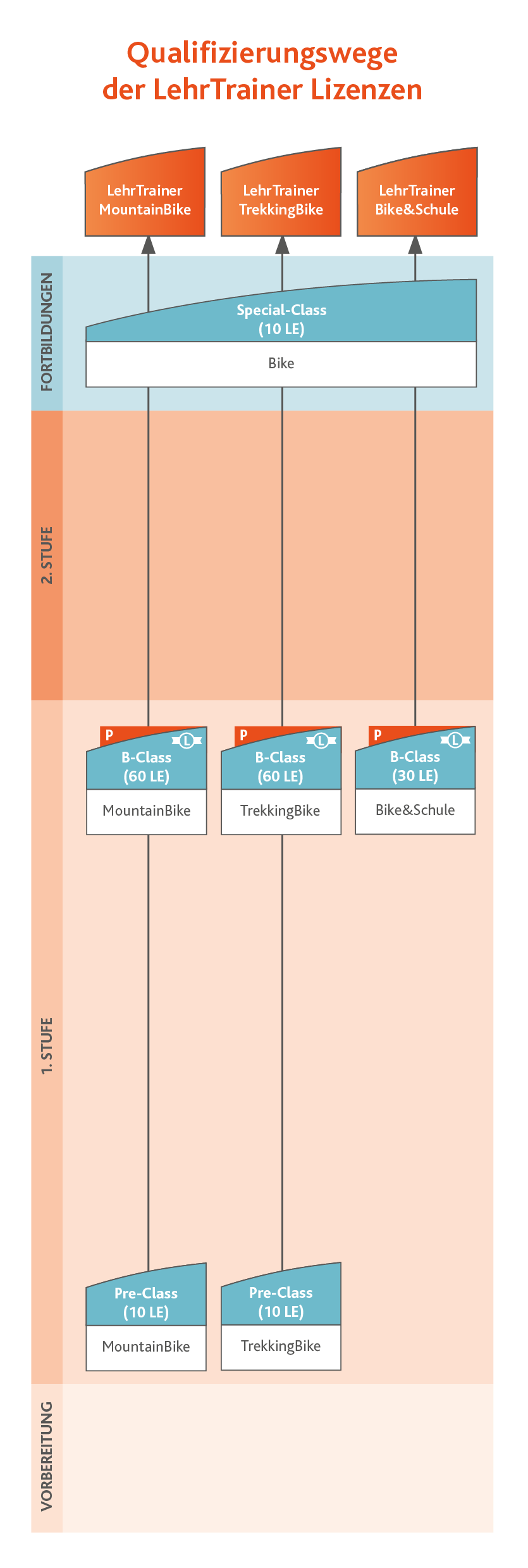 Durch die steigende Beliebtheit des Bikesports generell wächst auch der Bedarf nach einer entsprechenden Qualifizierung. Das SportBildungswerk sieht den LehrTrainer TrekkingBike hier als Fachkraft und Experten, der in diesem Sportbereich umfassend ausgebildet ist und nicht nur im SportBildungswerk, sondern auch an Schule, Hochschule, in der Weiterbildung, im Verein oder in der Touristik sein Tätigkeitsfeld findet. Der grundsätzliche Aufgabenbereich erstreckt sich auf die Planung, Durchführung und Nachbereitung von Angeboten für unterschiedliche Nutzergruppen. Stichworte sind: Kursangebote, Serien von Tagesangeboten, Fahrtechnik Kurse, Tagestouren, BikeKultouren, BikeWanderungen, BikeSportouren, Trails, Eventgestaltung, Infoabende, Fahrradmesse, Gesundheitsmesse usw.